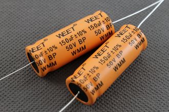 Биполярные электролитические конденсаторы WEET WMM для конструирования кроссоверов акустических систем и других аудио применений, часто используются в режекторных фильтрах, при недостатке места на плате кроссовера, неполярные электролиты значительно экономят бюджет, так как обладают превосходным соотношением емкость/цена. Низкий коэффициент потерь DF, макс. 5% на 1 кГц.