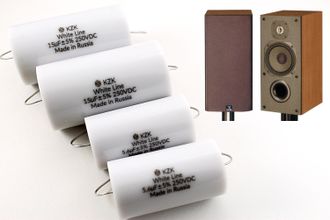 Одной из простейших переделок данной акустики, уже дающей значительный эффект, является замена штатных конденсаторов на пленочные полипропиленовые аудио конденсаторы российского производства KZK White Line.