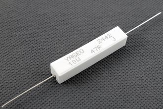 Керамический мощный фирменный SQP резистор YAGEO 47Ом 10Вт с аксиальными выводами удобно использовать при навесном монтаже разделительных фильтров колонок. Проволочные резисторы такого типа устанавливаются в кроссоверы практически всеми известными производителями акустических систем.