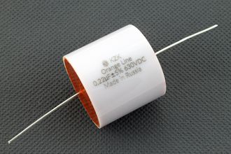 Пленочный конденсатор 0.22 мкФ 630В полипропилен/фольга - KZK Orange Line для применения в аудиотехнике. По звучанию и качеству изготовления отечественный конденсатор превосходит или сравним со многими зарубежными аналогами. Отличный выбор как проходных конденсаторов в ламповые усилители.