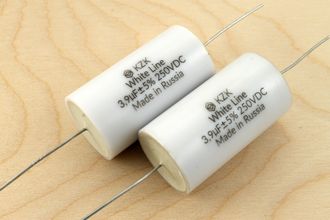 Конденсатор KZK White Line 3.9 мкф 250В - новые пленочные полипропиленовые аудио конденсаторы для кроссоверов акустических систем. Выберите White Line серию неполярных конденсаторов для кроссоверов вашего следующего проекта АС и вы будете удивлены их качеством звучания. Конденсаторы емкостью 3.9мкф превосходно подходят в высокочастотные фильтры твиттеров. Это обновленная версия популярных отечественных конденсаторов для фильтров акустики К78-34 250В.