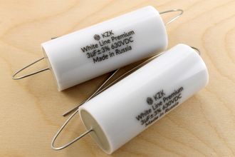 Полипропиленовые конденсаторы KZK White Line Premium 3 мкф 630В с максимально возможным напряжением и минимальным отклонением 3%. Топовые пленочные аудиоконденсаторы в серии White Line для кроссоверов High End акустических систем.