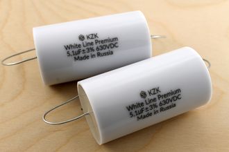 Полипропиленовые конденсаторы KZK White Line Premium 5.1 мкф 630В с максимально возможным напряжением и минимальным отклонением 3%. Топовые пленочные аудиоконденсаторы в серии White Line для кроссоверов High End акустических систем.