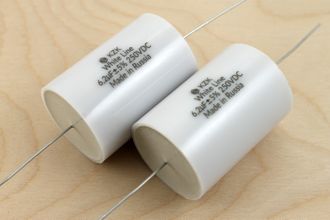 Конденсаторы KZK White Line 6.2 мкф 250В - пленочные неполярные полипропиленовые аудио конденсаторы для кроссоверов акустических систем, усилителей НЧ. Это обновленная версия популярных отечественных конденсаторов для фильтров акустики К78-34 250В. Конденсаторы успешно применяются в фильтрах ВЧ первого порядка в акустике.