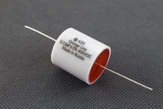 Пленочный отечественный конденсатор KZK Orange Line 0.15мкф(150нф) 400В с полипропиленовым диэлектриком и фольговыми алюминиевыми обкладками. Аудио конденсаторы изготовлены по той же технологии, что и KZK White Line. Отличные межкаскадные конденсаторы для лампового УМЗЧ. Хорошо себя показывают в фонокорректорах, в том числе и ламповых. Длинные аксиальные выводы удобны для навесного монтажа.