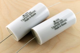 Конденсатор KZK White Line 7.5мкф 400В - аудио конденсатор на основе металлизированной полипропиленовой пленки для кроссоверов акустических систем, выгодное соотношение цена/качество. Номинальное постоянное напряжение 400В также позволяет использовать конденсаторы в ламповой аудиотехнике. Это обновленная версия популярных отечественных конденсаторов для фильтров акустики К78-34 400В.