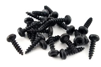 Черные матовые(вороненые) саморезы для крепления динамиков(СЧ-динамики, мидбасы) к корпусу акустики из МДФ или фанеры с головкой Torx20(шестилучевая звездочка).