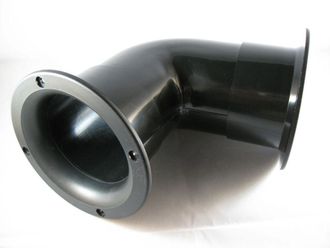 Изогнутая пластиковая труба фазоинвертора c двумя оптимизированными воронокообразными раструбами для предотвращения шума воздушного потока и потерь на трение.